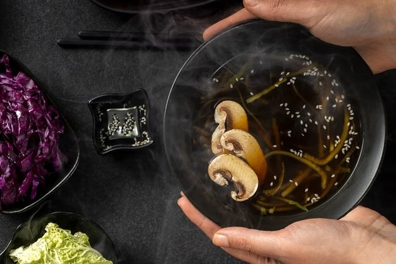 - Polévka pro ochutnání: voda + kombu + pár kousků mrkve a cibule — vařte krátce, vyndejte kombu a dochuťte.